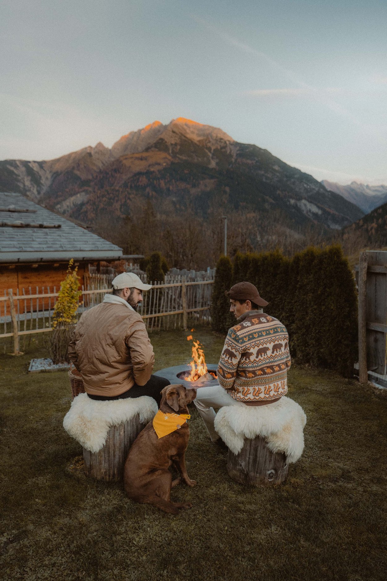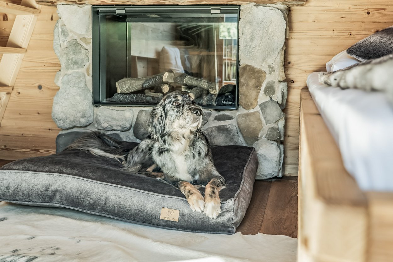 Kuscheliges Chalet für romantische Zweisamkeit. Es ist mit einem großen Doppelbett (1,80 x 2,00 m), einem offenen Koch- und Essbereich mit gemütlicher Eckbank, einer vollausgestatteten Almküche mit hochwertigen Geräten (Spülmaschine, Herd, Backofen und Nivona Kaffee-Vollautomat), Indoor-Wellnessdusche im Badezimmer, einem 43-Zoll-TV, einem Suitepad mit 400 aktuellen Zeitungen und Zeitschriften sowie Spielen und einem MOVEit Bluetooth-Soundsystem ausgestattet. Außerdem sind im Außenbereich eine private Outdoor-Sauna, ein Edelstahl-Hot-Pot, eine großzügige Sonnenterrasse mit urigen Holzmöbeln und Liegestühlen sowie eine Luxus-Grillschale zu finden. Eine Spielesammlung mit Gesellschaftsspielen und ein Fernglas zur Beobachtung von Tierwelt und Sternenhimmel sind auch vorhanden.