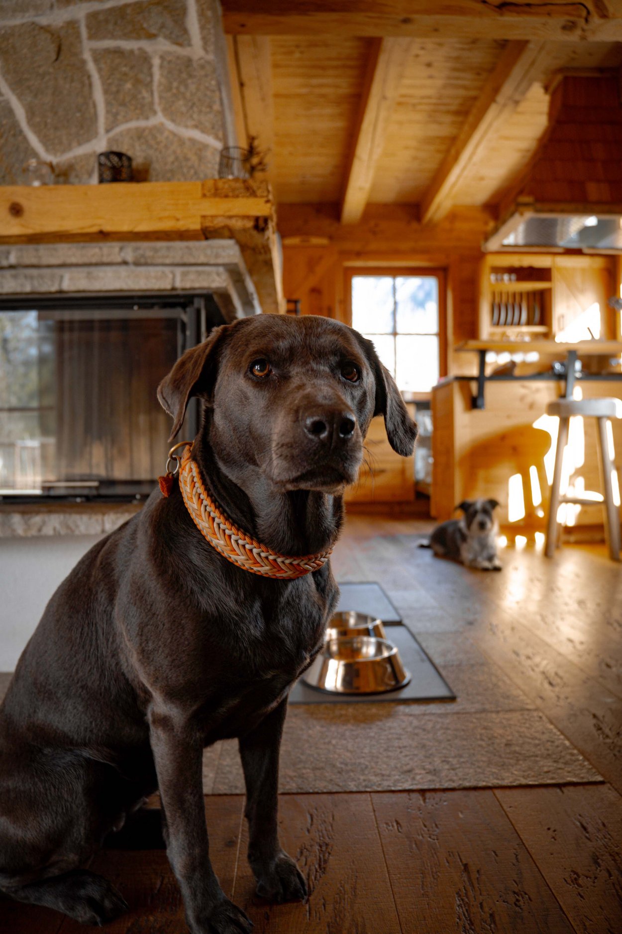 Gemütliches Chalet im Grünen mit ausreichend Freiraum für Deinen treuen Vierbeiner. Es ist mit einem Wohnzimmer mit Kamin-Effektfeuer, einem offenen Koch- und Essbereich mit gemütlicher Eckbank, einem Schlafzimmer mit großem Doppelbett, einem Daybed im Ruhebereich, einer Almküche mit hochwertigen Geräten, einem kuscheligen Dachboden unterm Chaletdach, zwei Fernsehern, einem Badezimmer und einem privaten Spa-Bereich mit Sauna, Edelstahl-Hot-Pot und Indoor-Wellnessduschen ausgestattet. Die großzügige Terrasse verfügt über eine Luxus-Grillschale, Holzmöbel und Liegestühle. Das Grundstück rund ums Chalet ist eingezäunt.